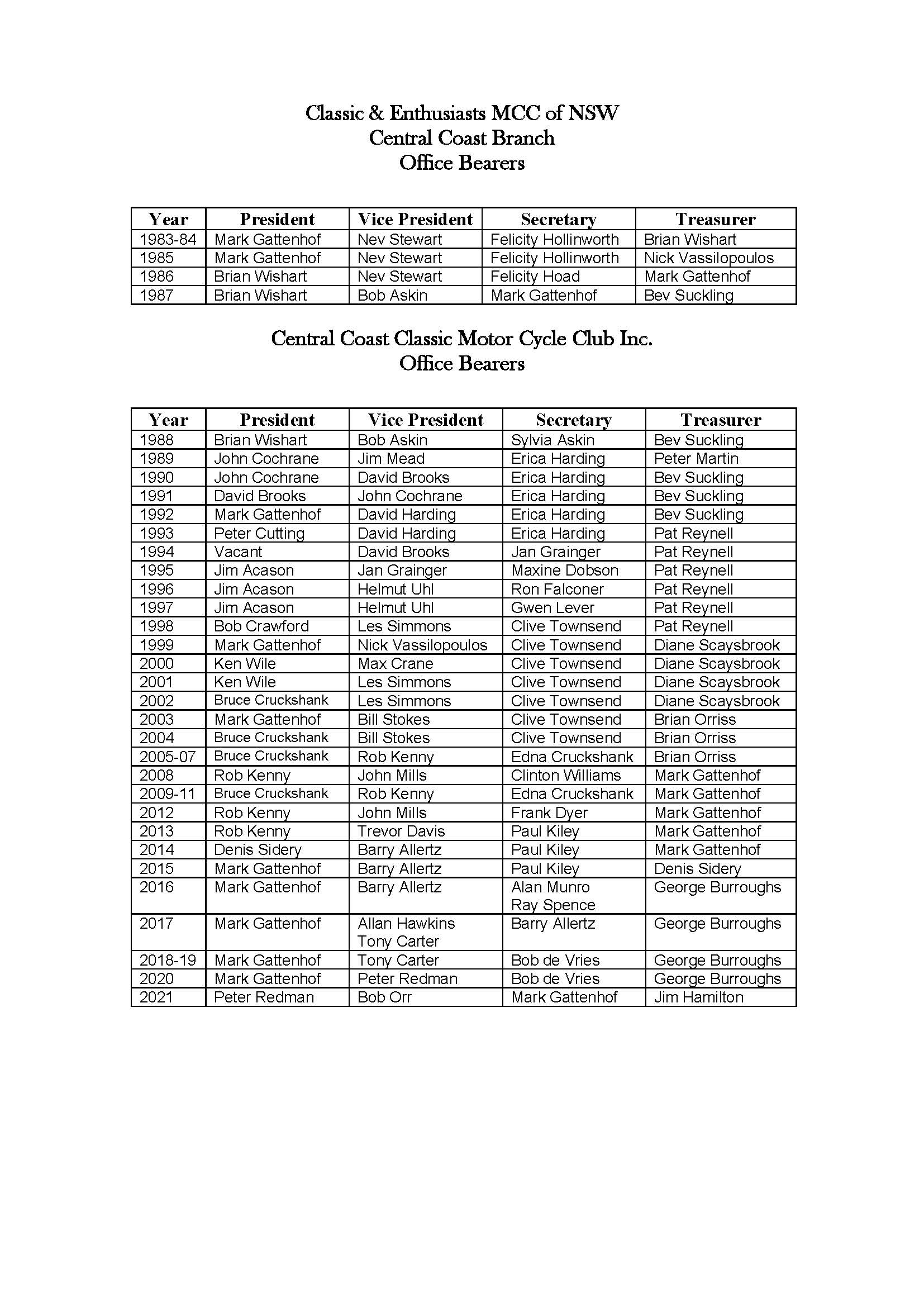 On the 5th April 1983, a group of people met at Wyoming, New South Wales, and formed the Central Coast Branch of the Classic & Enthusiasts MCC of NSW